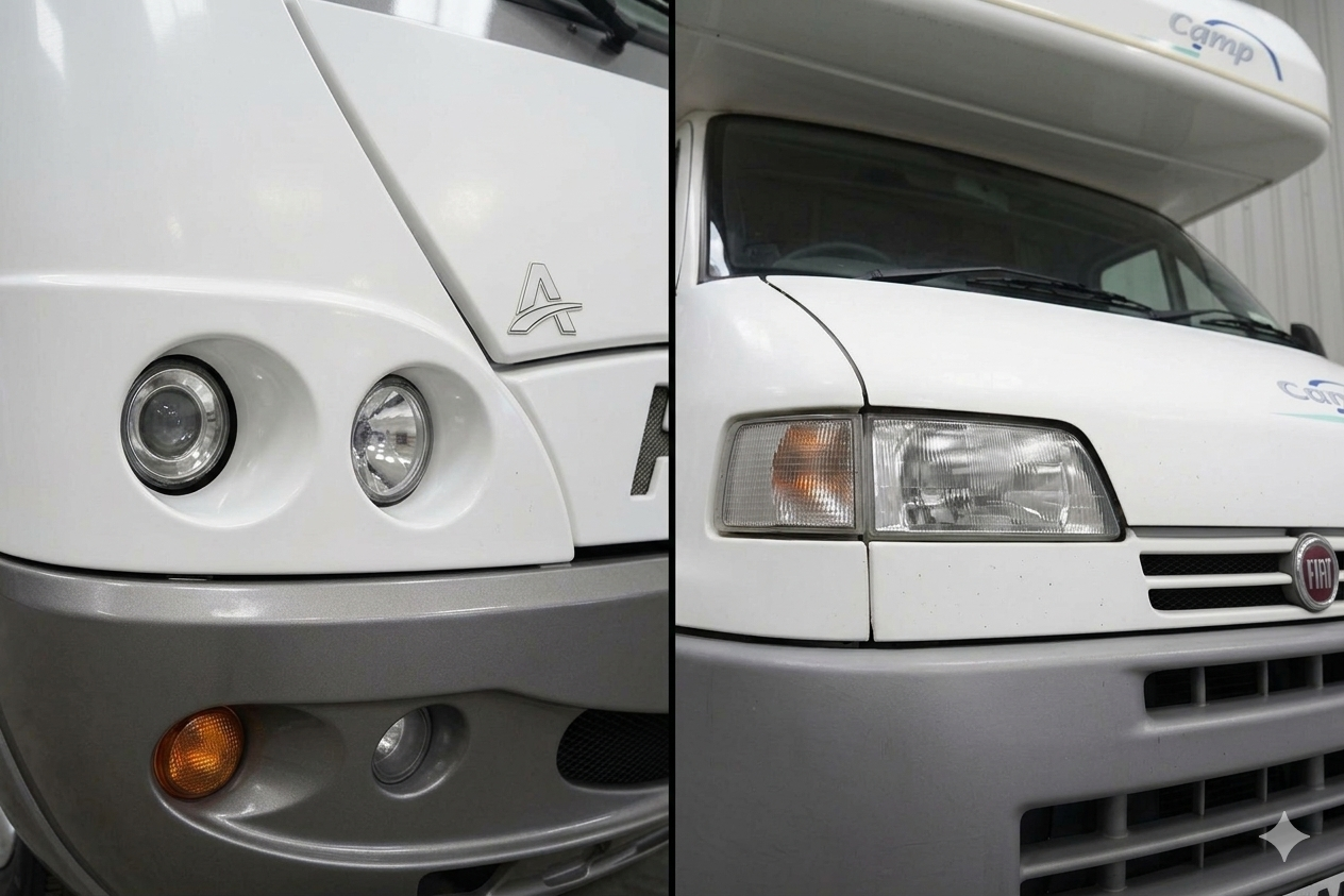 Kompatibel mit allen Hymer Wohnmobilen, bei denen das Basisfahrzeug ein Fiat Ducato ist – egal ob runder Scheinwerfer oder original Fiat-Scheinwerfer.